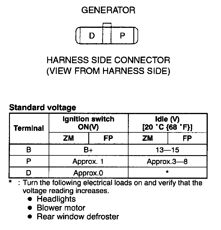 3. Turn the ignition switch to ON and verify that the generator warning light comes on.