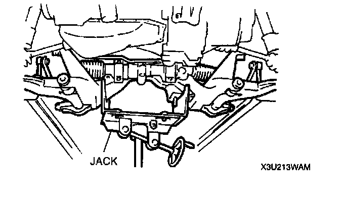 1. Support the crossmember using a jack and remove the bolts and nuts.