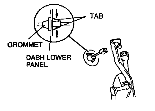 3. Compress the tabs on the grommet, and remove it from the dash lower panel.