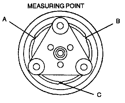 5. Measure the clearance for points B and C on the pressure plate surface by repeating the above Steps 2 through 4.