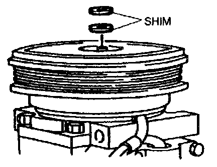 - If not within the specification, remove the pressure plate and adjust the clearance by changing the shim (0.2 mm {0.008 in}, 0.5 mm {0.02 in}) or the number of shims.