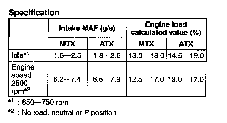 NOTE: The scan tool shows the MAF rate and load value.