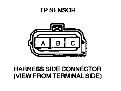 3. Measure the resistance between TP sensor terminals A and C using an ohmmeter.