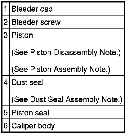 - When compressed air is blown into the caliper body, injury to a finger or other part from pinching could result from the piston springing up. When blowing in compressed air, do not place your fingers between the piston and caliper body when performing the work.