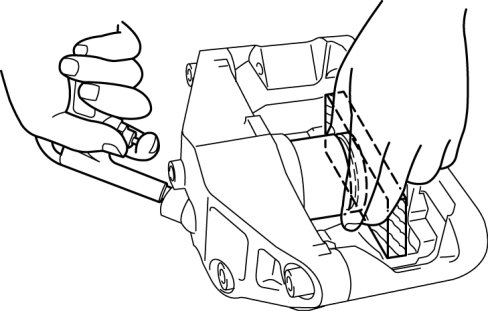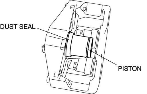 - When blowing compressed air into the caliper body, the piston may pop out and cause injury if not supported at the correct point. Securely support the piston friction surface by hand when blowing compressed air.