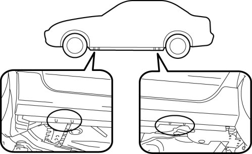 - Both sides of the vehicle, on side sills.