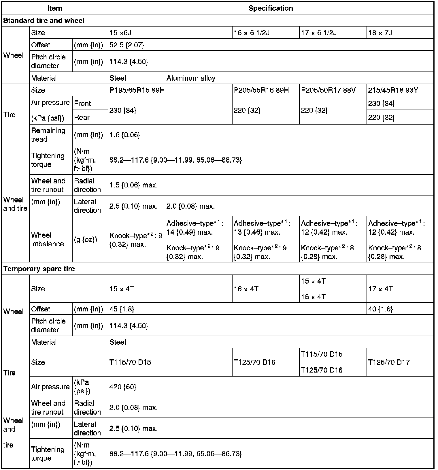 One balance weight: 60 g {2.12 oz} max. If the total weight exceeds 100 g {3.53 oz} on one side, rebalance after moving the tire around on the rim. Do not use three or more balance weights.