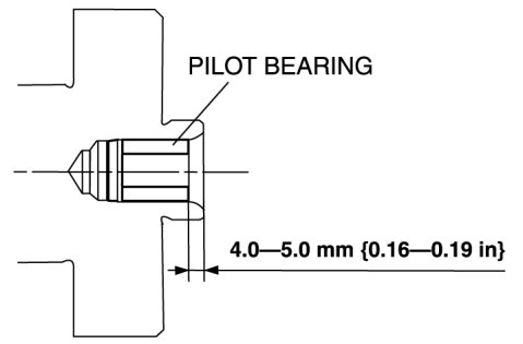 1. Install the pilot bearing using the corresponding 20 mm {0.79 in} side of a Snap-on brand millimeter size bushing driver set A160M adapter A160M7 (20-22 mm {0.79-0.86 in}) or substitution tool.