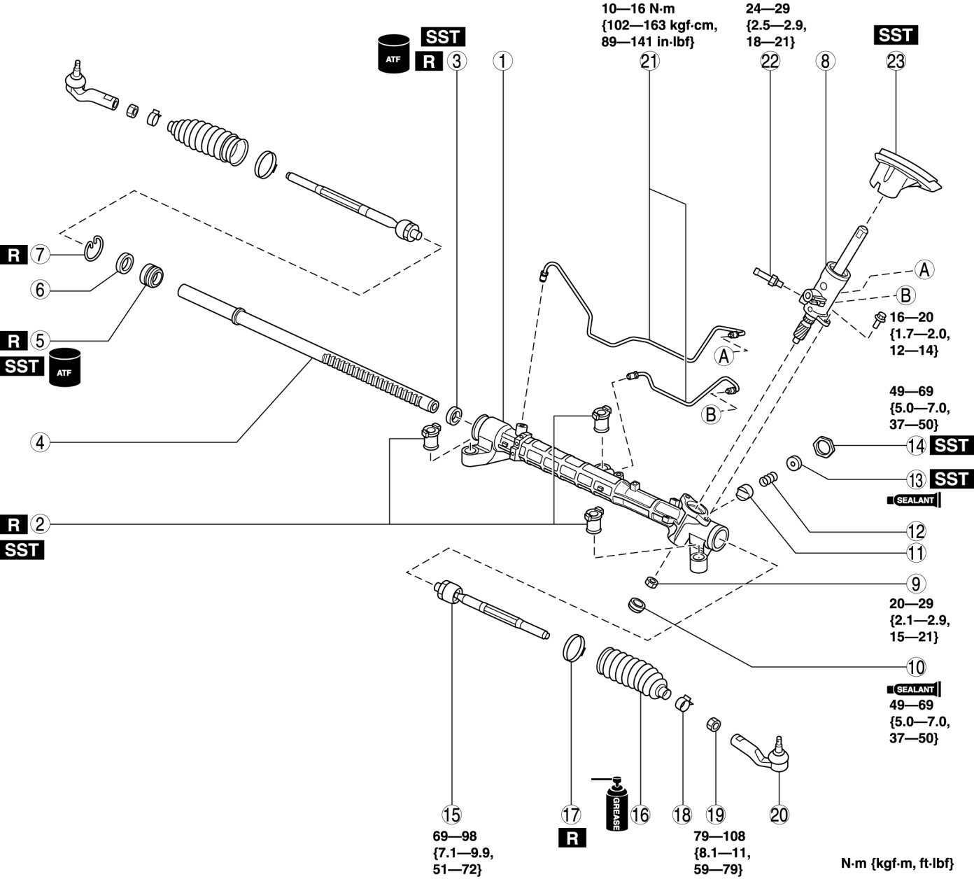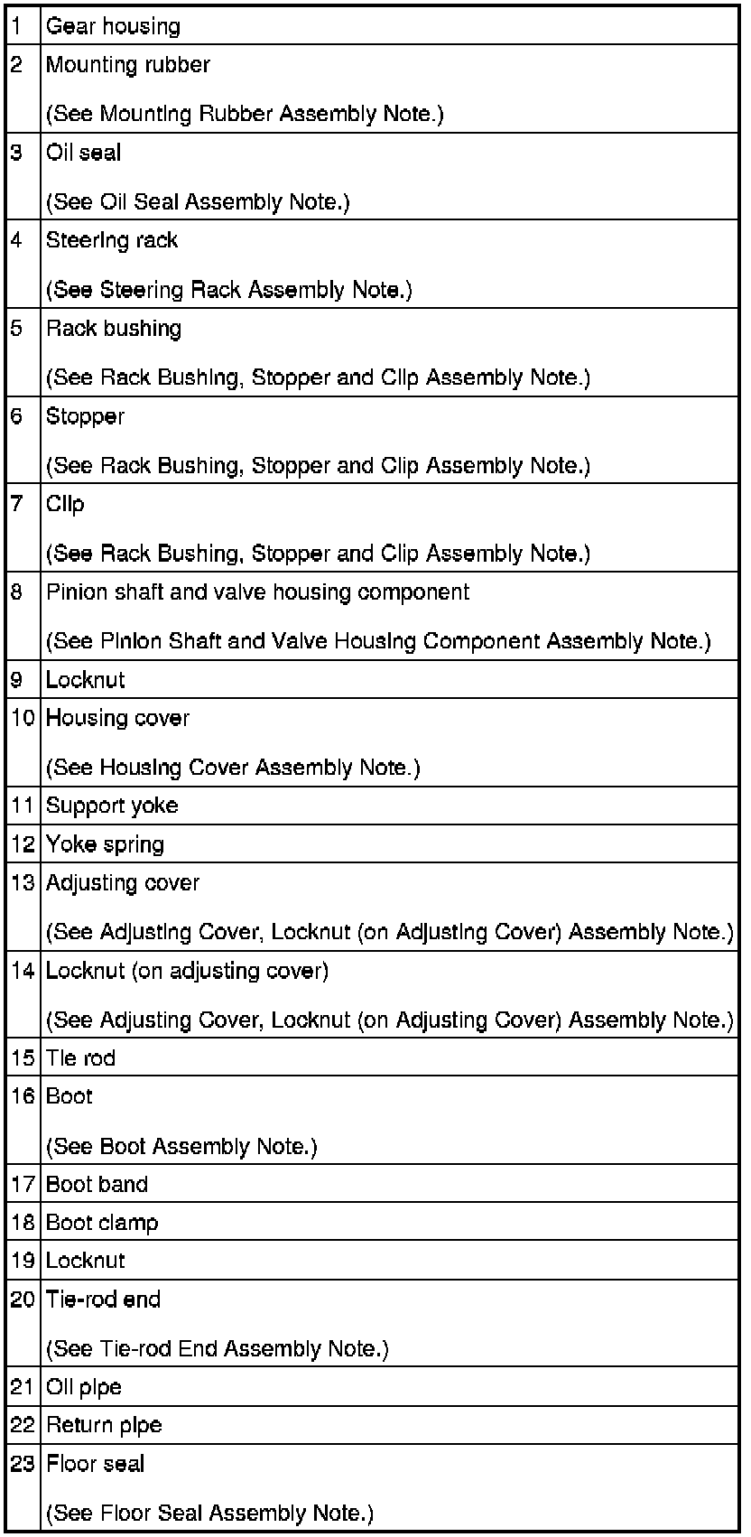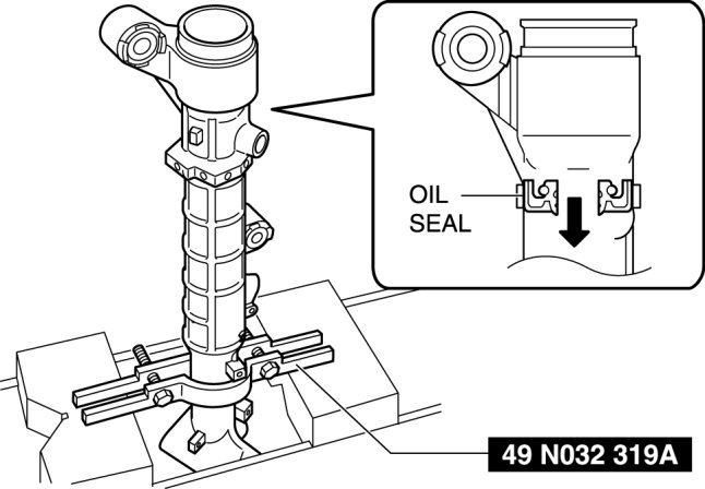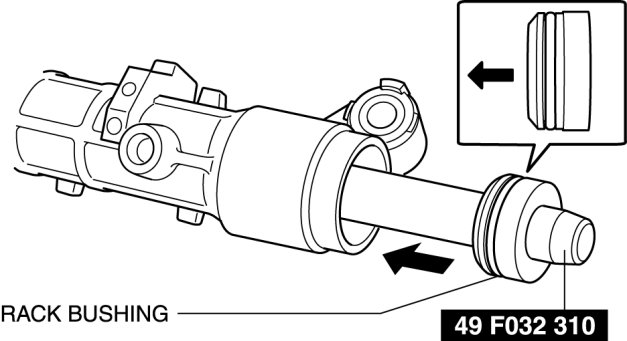 - If there is a malfunction, inspect the gear housing inner surface and the oil seal, and the rack bushing for damage, and repair or replace if necessary.