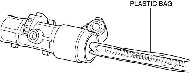 2. Install a plastic bag to the rack teeth and insert the steering rack in the gear housing.
