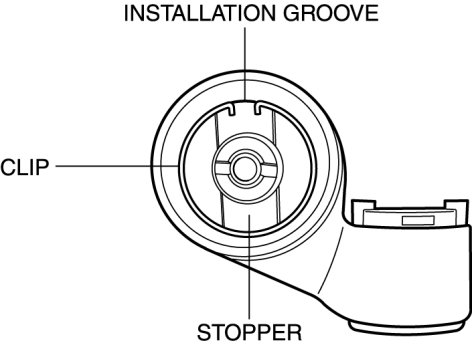 3. Insert the stopper together with the rack bushing to the rack housing so that the stopper extends past the installation groove on the rack housing.