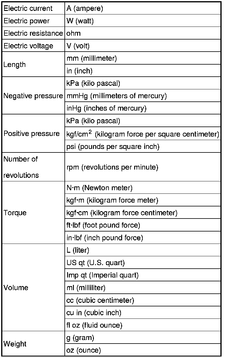 - All numerical values in this information are based on SI units. Numbers shown in conventional units are converted from these values.