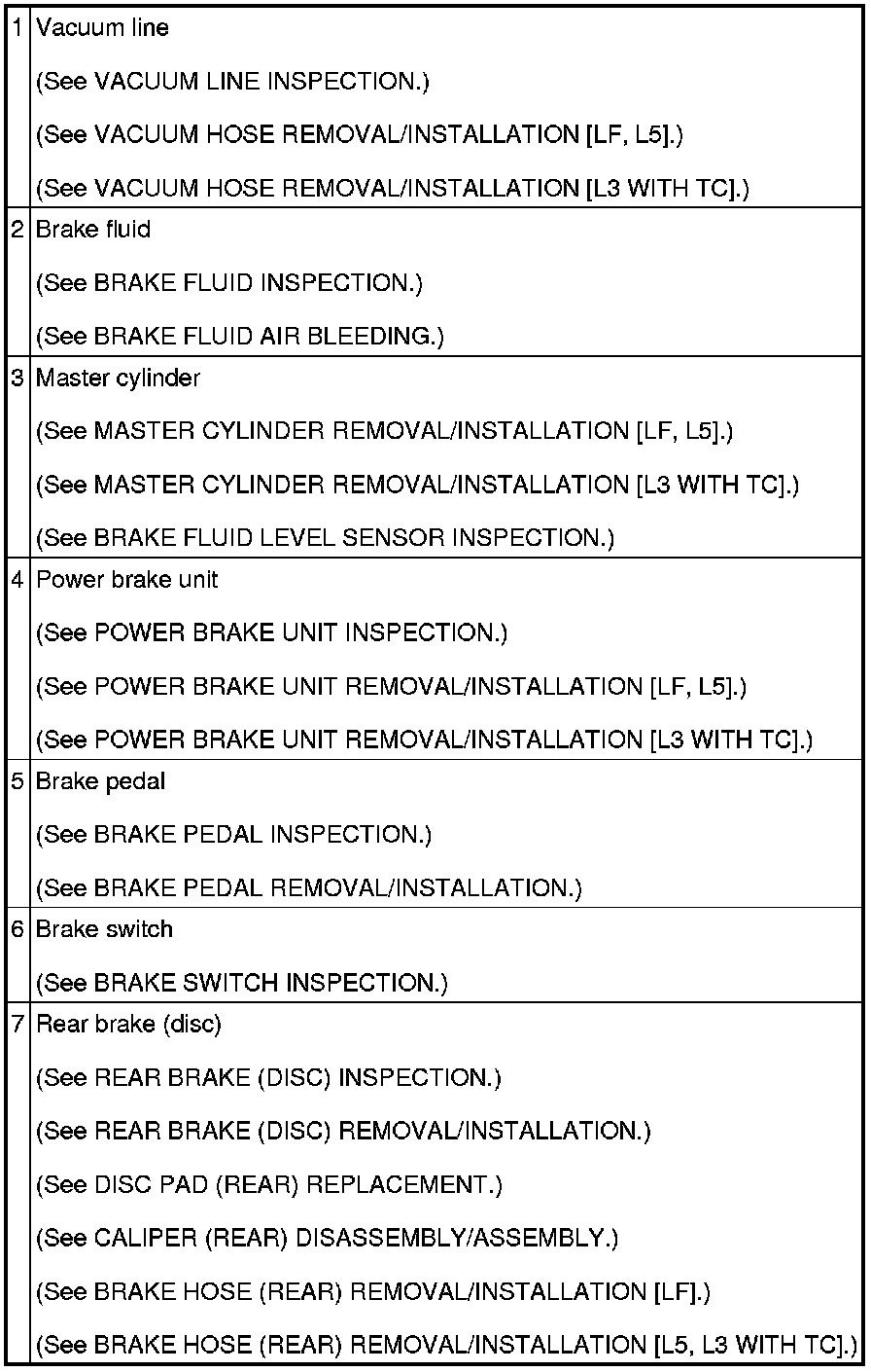 CONVENTIONAL BRAKE SYSTEM LOCATION INDEX
