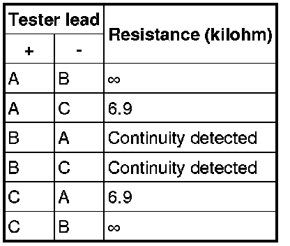 1. Verify that the continuity between the power MOS FET terminals is as indicated in the table.