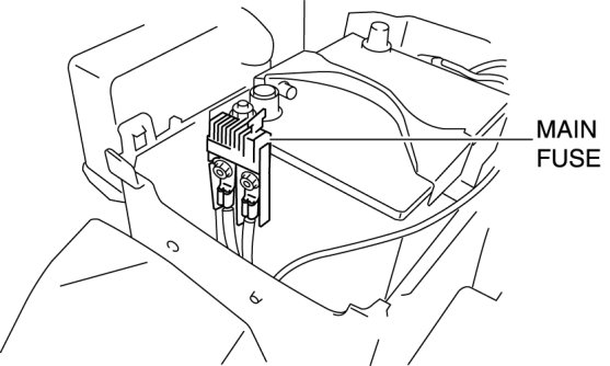 - Be sure the negative battery terminal is disconnected before replacing a main fuse.