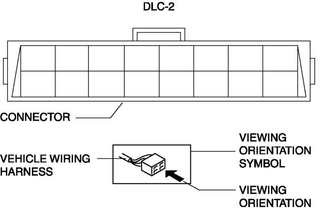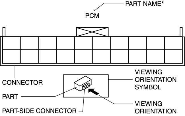 When it is necessary to show the terminal side of vehicle harness-side connectors, such as the following connectors, the viewing direction is from the terminal side.