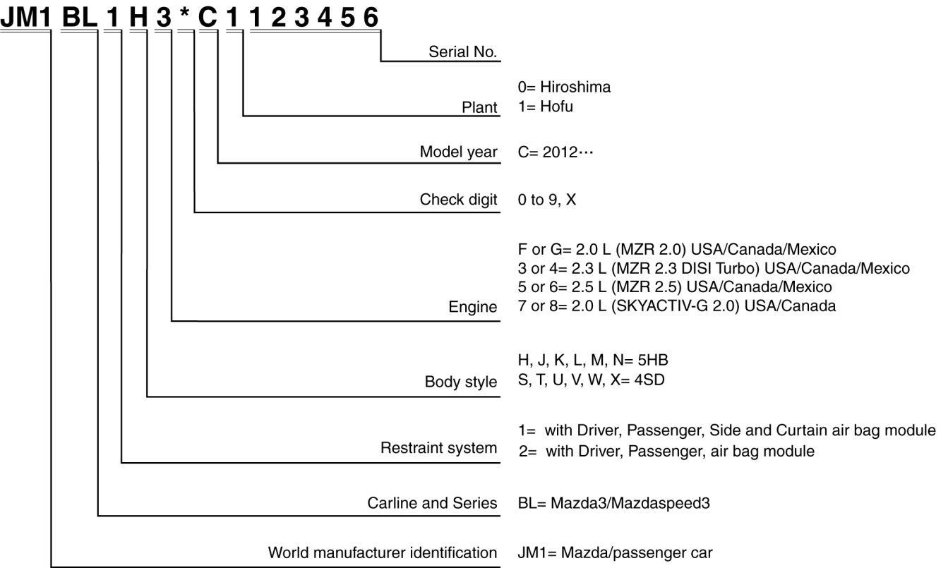 VEHICLE IDENTIFICATION NUMBER (VIN) CODE