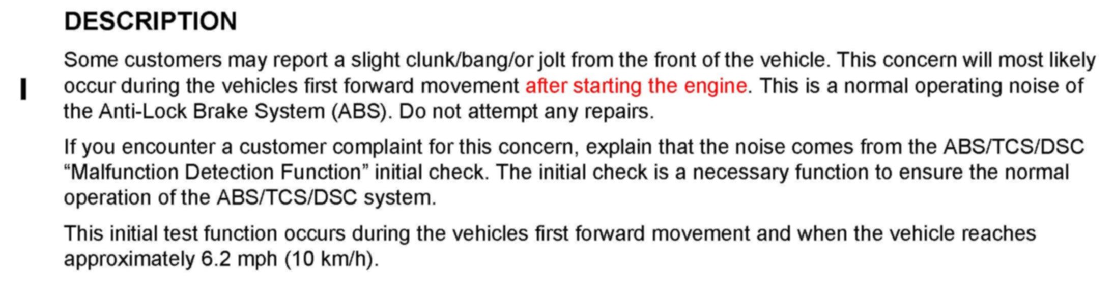 ABS/TCS/DSC - Clunk/Bang/Jolt From Front Of Vehicle At Take-Off