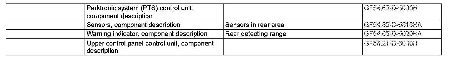 If the on-board power supply drops below 9 V or if the on- board power supply exceeds 16 V, then the PTS sensors in the rear bumper and the left front and right front Parktronic warning indicators are switched off by the PTS control unit.