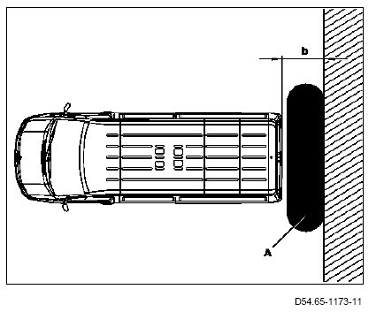 1 For the teach-in position the vehicle backwards at a distance of 50 cm (b) in front of a wall.