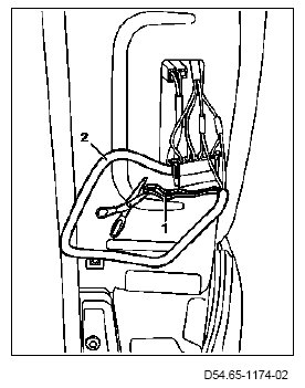 3 Separate the blue line (1) of the wiring harness of the power supply (2) and strip off the insulation.