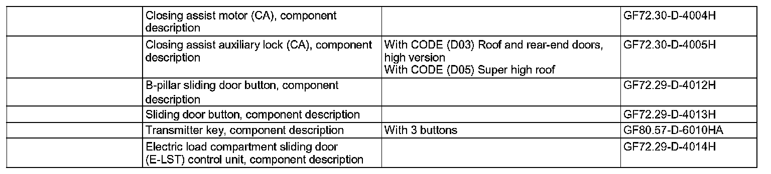 - Auxiliary lock on vehicles with code (D03) Roof and rear-end doors, high version or with CODE (D05) Super high roof, opened