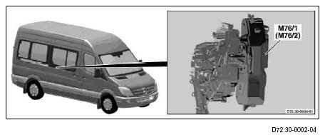 As soon as the rotary tumbler is in the main catch, the right sliding door control unit (N69/6) or left sliding door control unit (N69/7) receives a corresponding signal from the right sliding door CL rotary tumbler switch (M14/27s1) or left sliding door CL rotary tumbler switch (M14/28s1) integrated into the door lock and actuates the right or left sliding door closing assist motor which pulls the striker toward inside.This closes the sliding door completely.