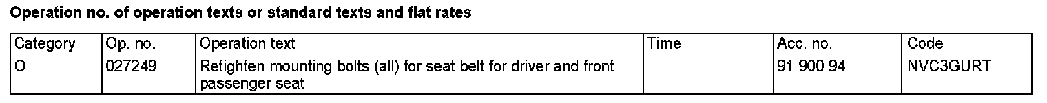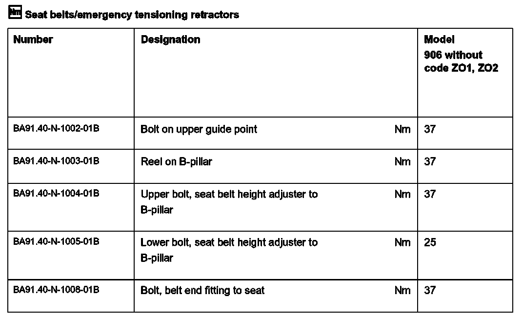 SM91.40-D-0020NC Retighten Seat Belt Bolts
