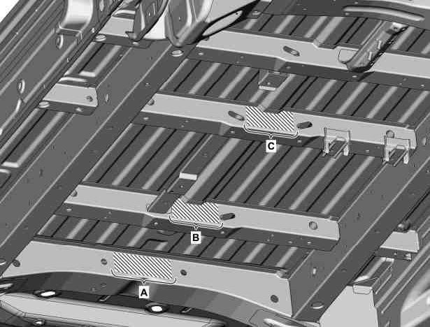 1 Grind mating surface down to bare metal in cross-hatched area (A, B, C) with round wire brush.