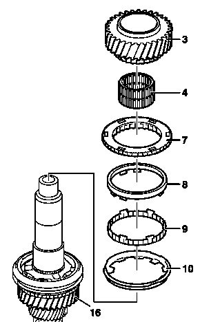 9 Remove the synchronizer ring (12), cone ring (13), friction ring (14) and clutch body (15).
