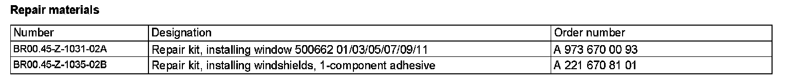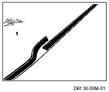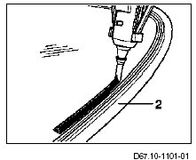 When applying, the adhesive bead must have the same height as the triangular nozzle cutout. Apply first 5 cm of adhesive bead onto a piece of cardboard, since the components are not yet properly mixed at the beginning. Always apply adhesive bead to side window (1). On 2-component adhesive install window (1) within 5 minutes and on 1-component adhesive install within 10 minutes, otherwise the adhesive force of the glue starts to decrease.
