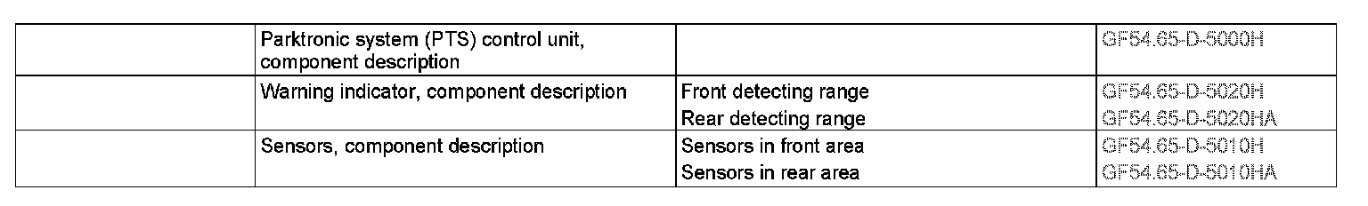 For one second all light emitting diodes (LED) in the front Parktronic warning indicator at the left and right front and in the center front PTS warning element (A44/9) are activated.