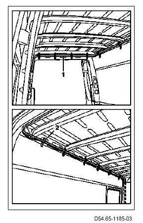 1 Route line (1) for the ultrasonic backup assist horn from the right-hand rear pillar up to the passenger compartment.