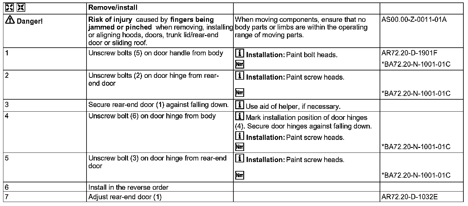 AR72.20-D-2650A Remove/Install Rear-End Door Hinge