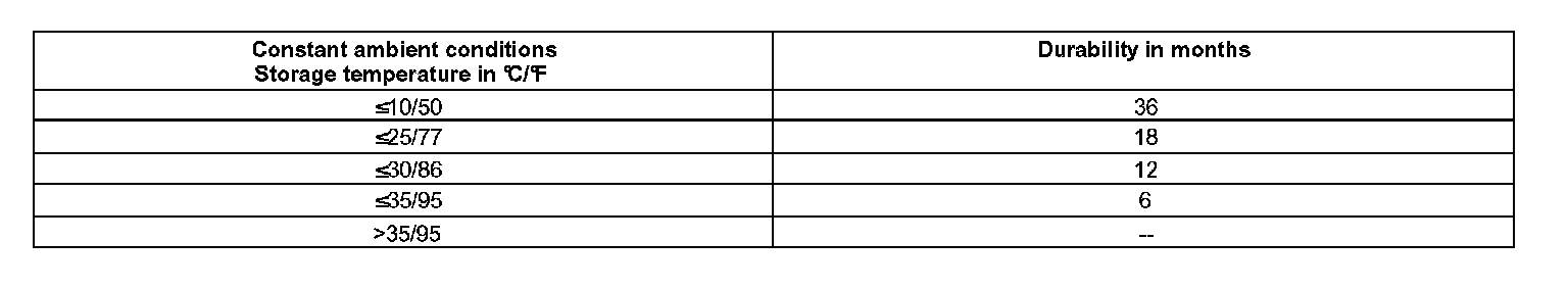 If the recommended storage temperature of a maximum of 25°C/77°F is maintained, the AdBlue(R) will fulfill the requirements of this standard for at least 18 months after manufacture. If this recommended storage temperature is exceeded then this period is reduced. Duration of storage and the temperatures to be used are given as guideline values at the end of the document. At temperatures under -11°C/12 °F the AdBlue(R) freezes and becomes solid.