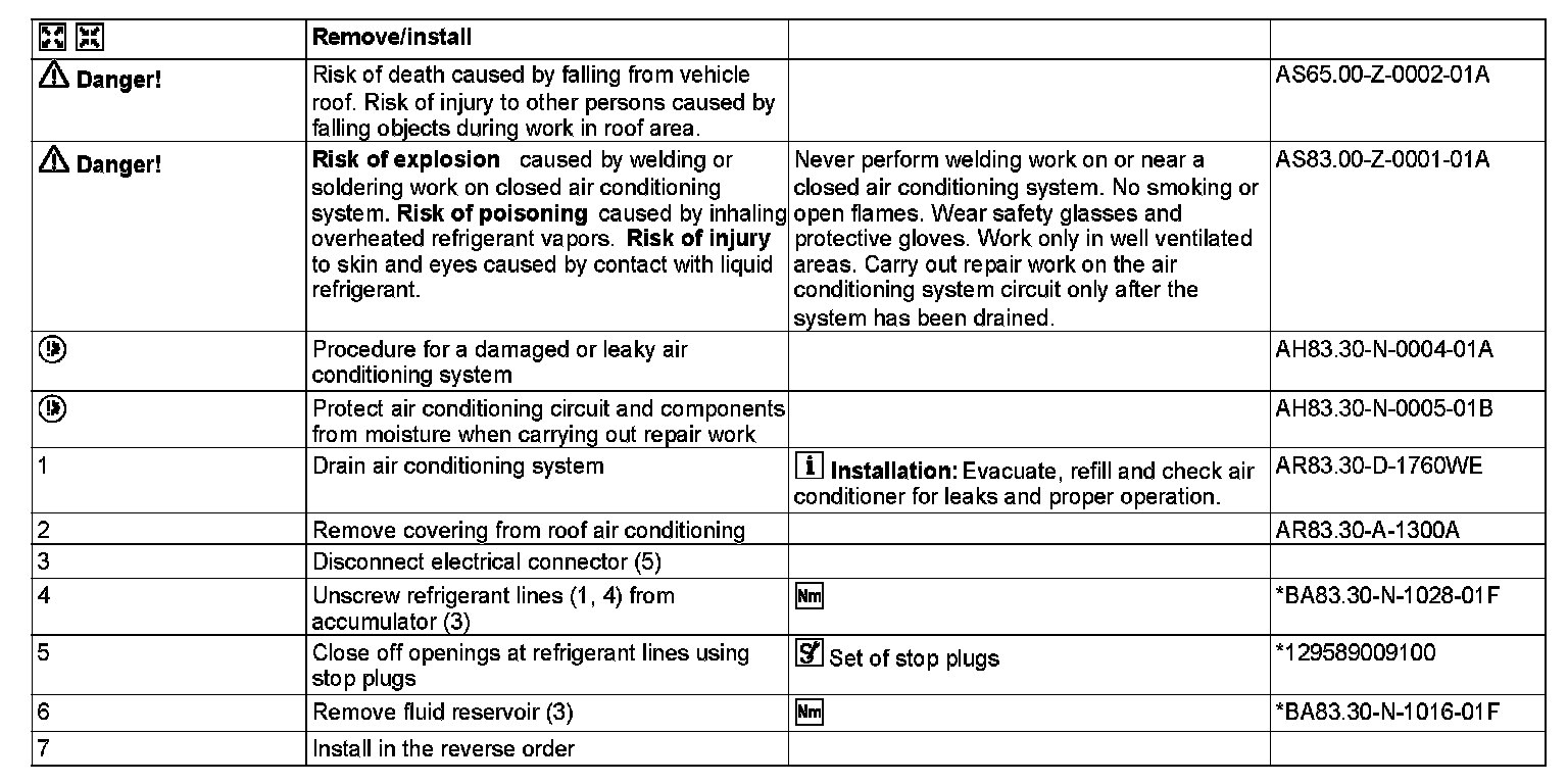 AR83.50-A-5080A Remove/Install The Air Conditioning's Fluid Reservoir (Roof Equipment)