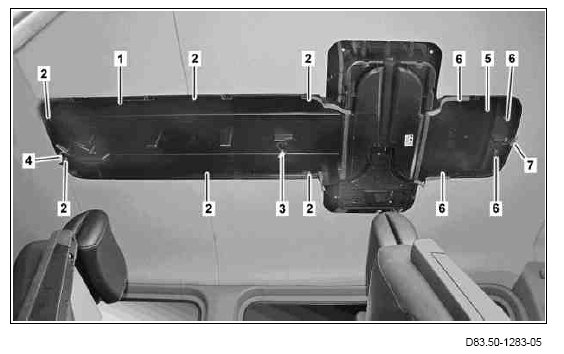 5 Remove electrical line (7) of illumination from front air duct (5).
