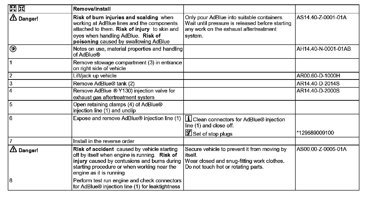 AR14.40-D-2001S Remove/Install Injection Line For Exhaust Aftertreatment System