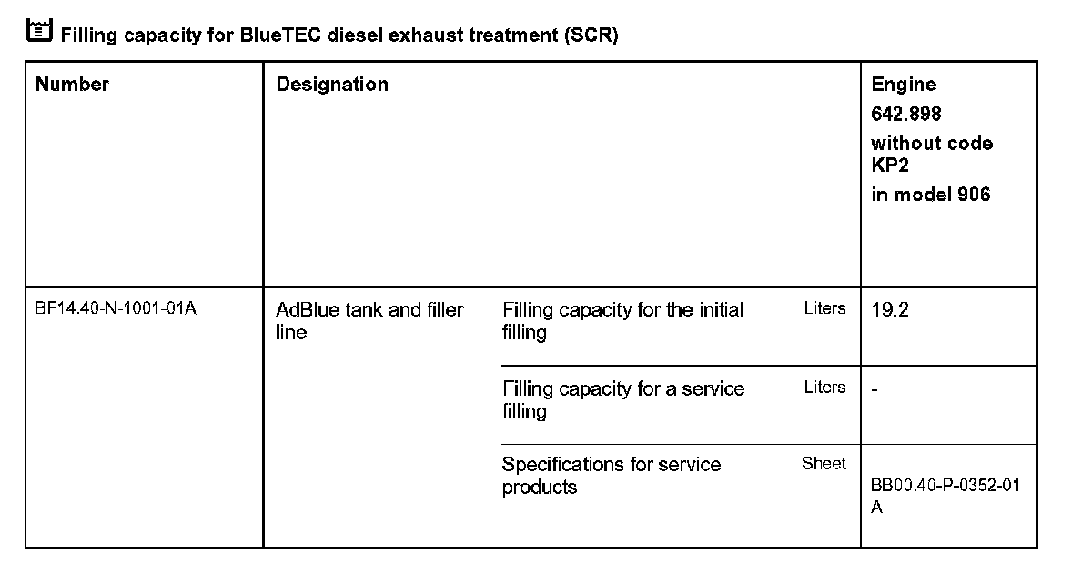 - except CODE (KP2) AdBlue tank, 12 l, in engine compartment