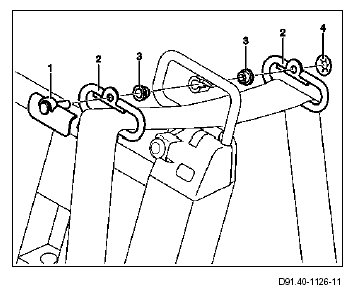 2. Pull out bearing pin (1) and remove guide brackets (2) with bearing bushings (3) from backrest frame.
