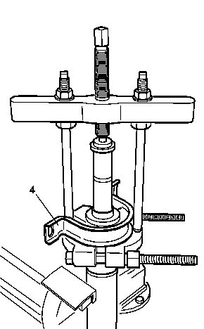 1 Pull off propeller shaft center support bearing (4), washer and, if fitted, protective caps using puller and drift (Drift = thrust piece).
