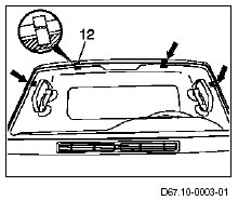 5. Lift side window (1) and center with adhesive strip (12) above window cutout, carefully lay down and press on.