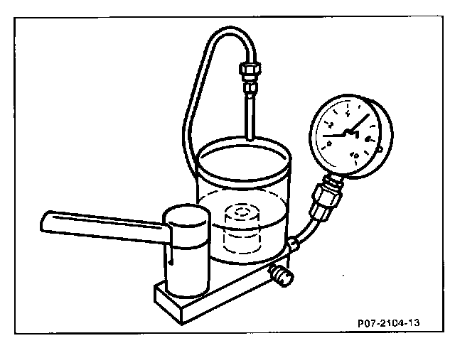 b) Shutoff cock open: slowly operate hand lever (4 sec./stroke) and build up pressure to max. 1.5 bar gauge. If a leak is detected at the injector, the injector must be replaced.