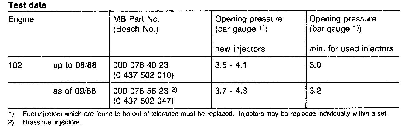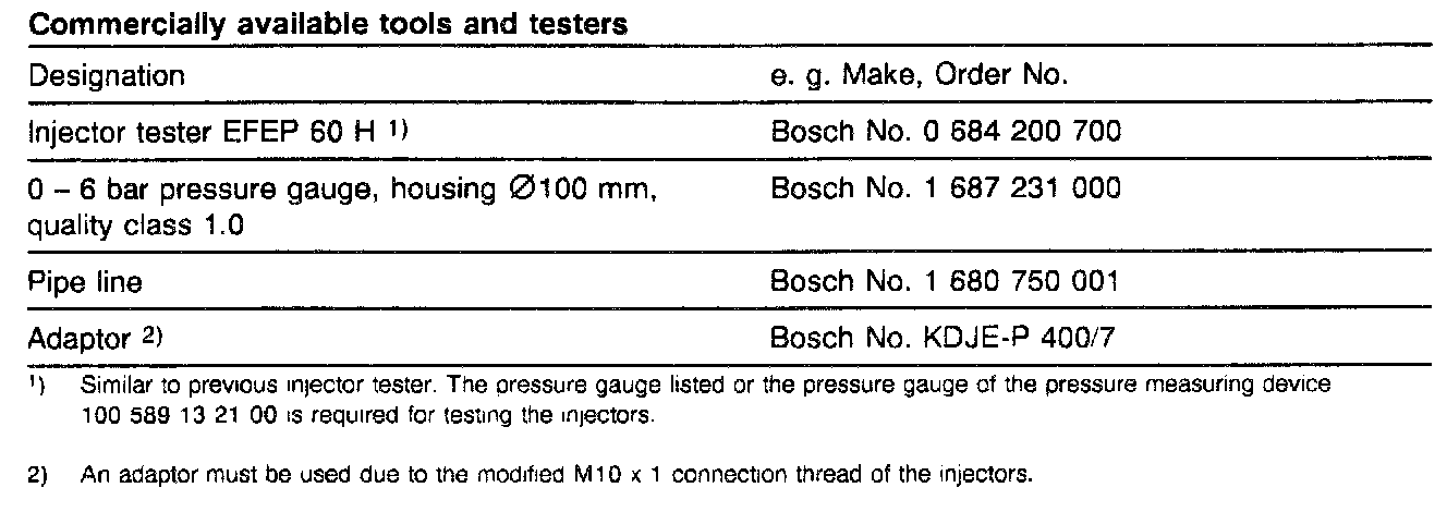 - The opening pressure, chatter, the jet and the leaktightness of the fuel injectors must be tested using an injector tester.