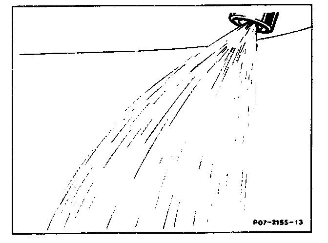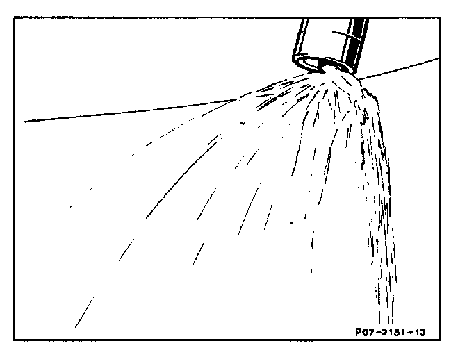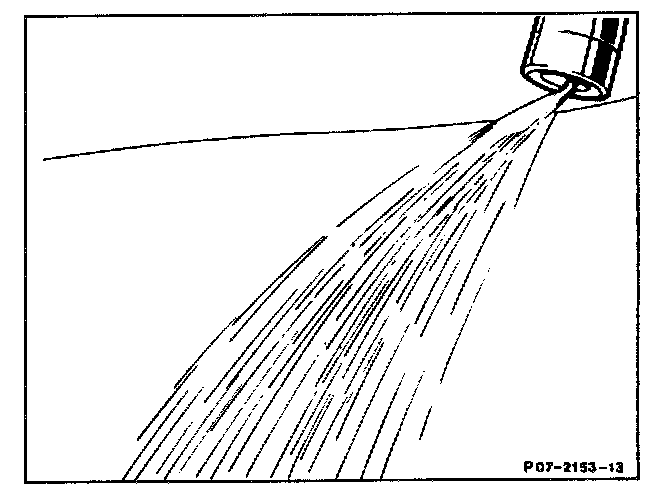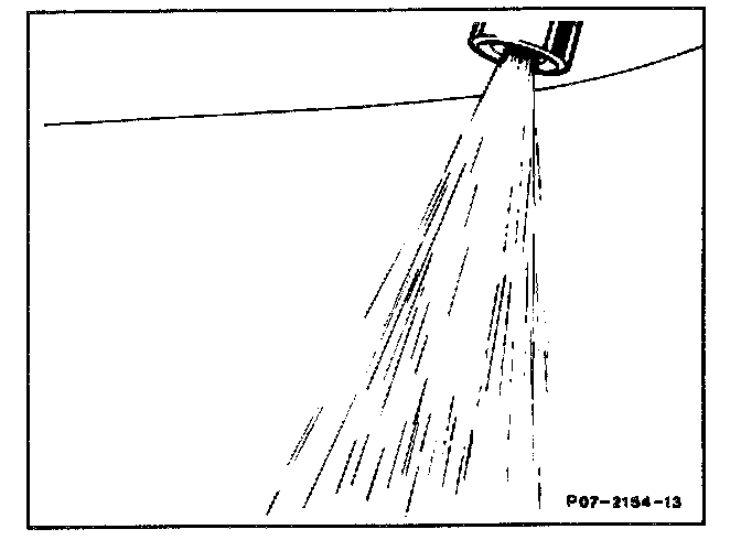 Close shutoff cock and flush injector by operating hand lever several times (0.5 sec./stroke). Following this, reduce lever speed to approx. 1 sec./stroke. This must cause the injector to chatter. No drop should form at the mouth of the injector. No string jet should form. Unilateral, atomized jet formation within a total spray angle of approx. 35 is permissible.