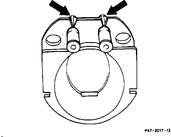 Insert new restriction sleeve in the filler neck. Align rivets with flange bores in filler neck. Slots (arrows, Figure 2) in restricticn sleeve assist in aligment. Using a mandrel, drive fastening rivets firmly into place up to the stop.