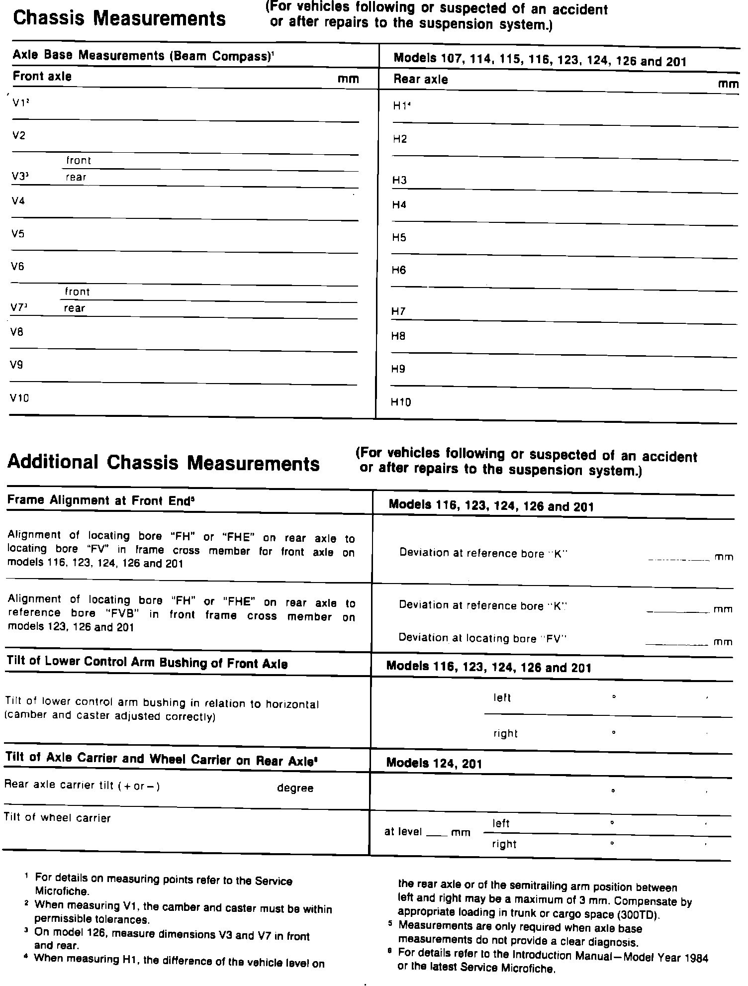 The wheel alignment and chassis measurement worksheet was updated and includes model 124.
