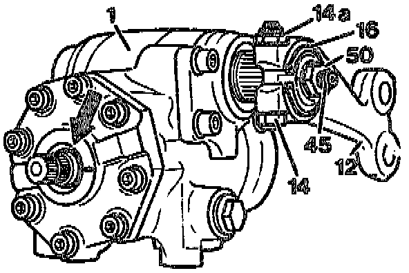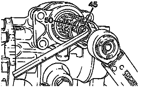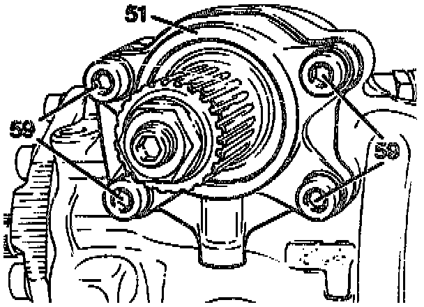 13. Replace O-rings. Introduce pitman arm shaft/bearing cover (51) together with pitman arm shaft into the steering gear housing so that the center tooth of the pitman arm shaft meshes into the middle tooth gap of the power piston. Ensure that the O-rings are correctly seated.