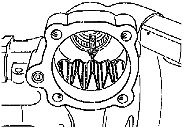 12. Rotate steering worm so that the middle tooth gap of the power piston (arrow) is located in the center of the opening in the steering gear housing.