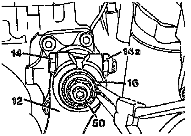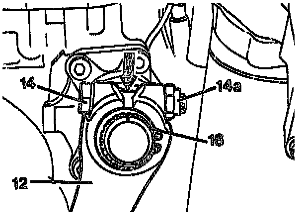 21. Push in bolt (14). Replace nut (14a), 55 Nm,